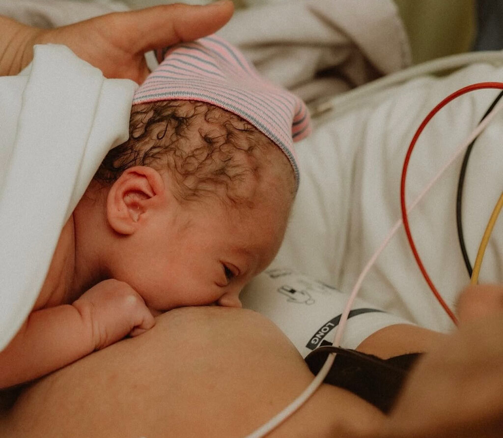 Mijn zus knipt de navelstreng door en Jurre gaat even mee voor een check door de kinderarts. Alles is goed en hij komt fijn bij mij liggen. Ik zeg volgens mij wel 20x tegen mijn zus: wat is hij mooi hè? En daarnaast; gaat het wel goed, ademt hij wel? Ondanks zijn mooie roze kleur en mijn kennis als verloskundige blijf ik het vragen. Iedere keer stellen ze mij weer gerust: hij doet het goed Manon, kijk hoe mooi roze hij is. Hij zit met grote kijkers om zich heen te kijken.